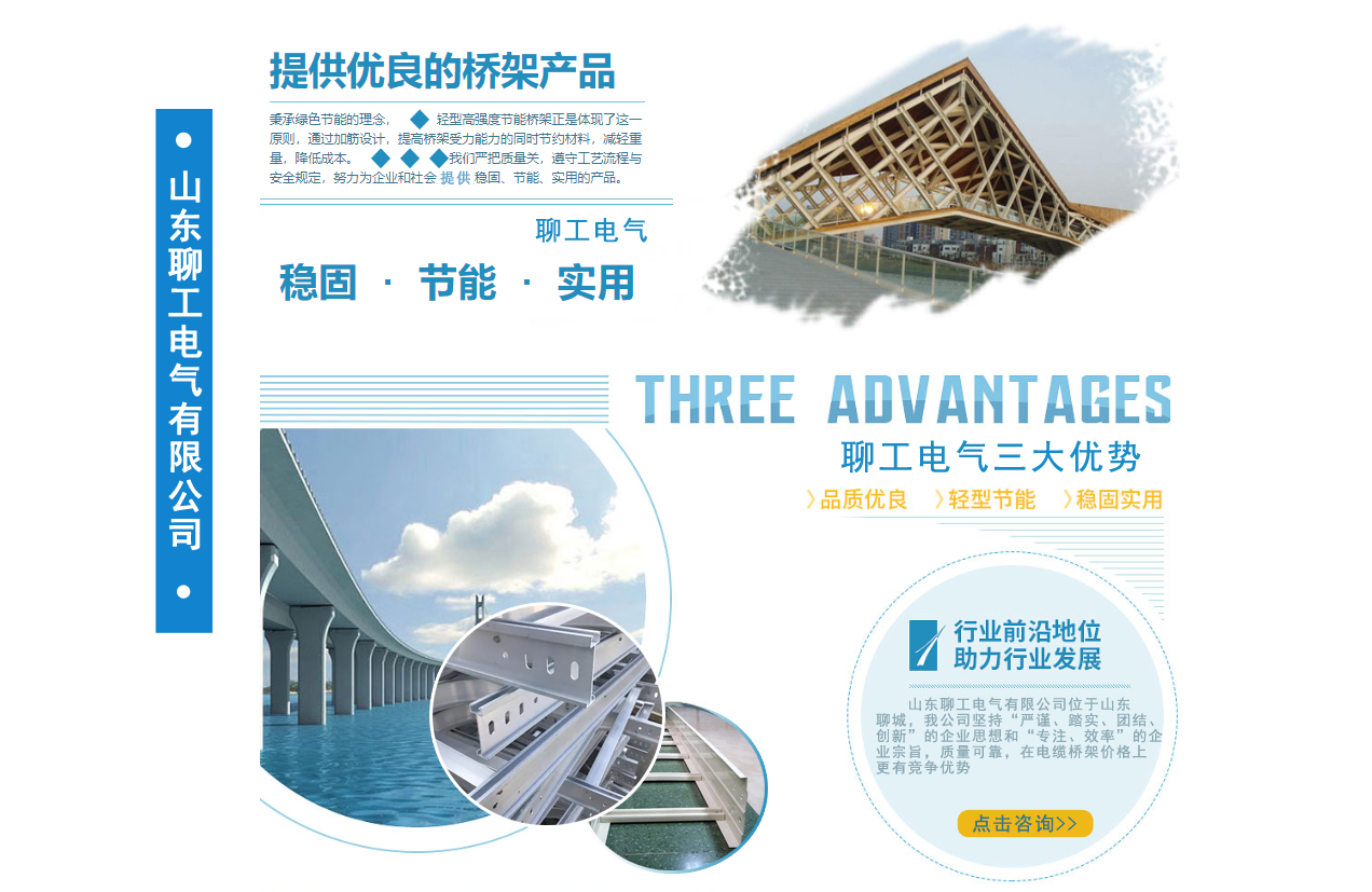 山東聊工電氣有限公司位于山東聊城,是一家銷(xiāo)售各類(lèi)橋架的公司,公司主營(yíng)鍍鋅防火噴塑橋架,鍍鋅防火電纜橋架 ,不銹鋼電纜橋架,熱浸鋅電纜橋架,鋁合金電纜橋架,熱鍍鋅電纜橋架,梯式電纜橋架等我公司堅(jiān)持“嚴(yán)謹(jǐn)、踏實(shí)、團(tuán)結(jié)、創(chuàng)新”的企業(yè)思想和“專(zhuān)注、效率”的企業(yè)宗旨,質(zhì)量可靠,在電纜橋架價(jià)格上更有競(jìng)爭(zhēng)優(yōu)勢(shì)。公司追求品質(zhì),配有研發(fā)人員,進(jìn)行產(chǎn)品的改革和創(chuàng)新,服務(wù)先進(jìn)走出了一條富有企業(yè)特色的可持續(xù)化發(fā)展之路! 我公司鄭重向你承諾:保證最好的質(zhì)量,以低的價(jià)格,完善的售后服務(wù),來(lái)答謝新老客戶(hù)。可提前電話聯(lián)系。...